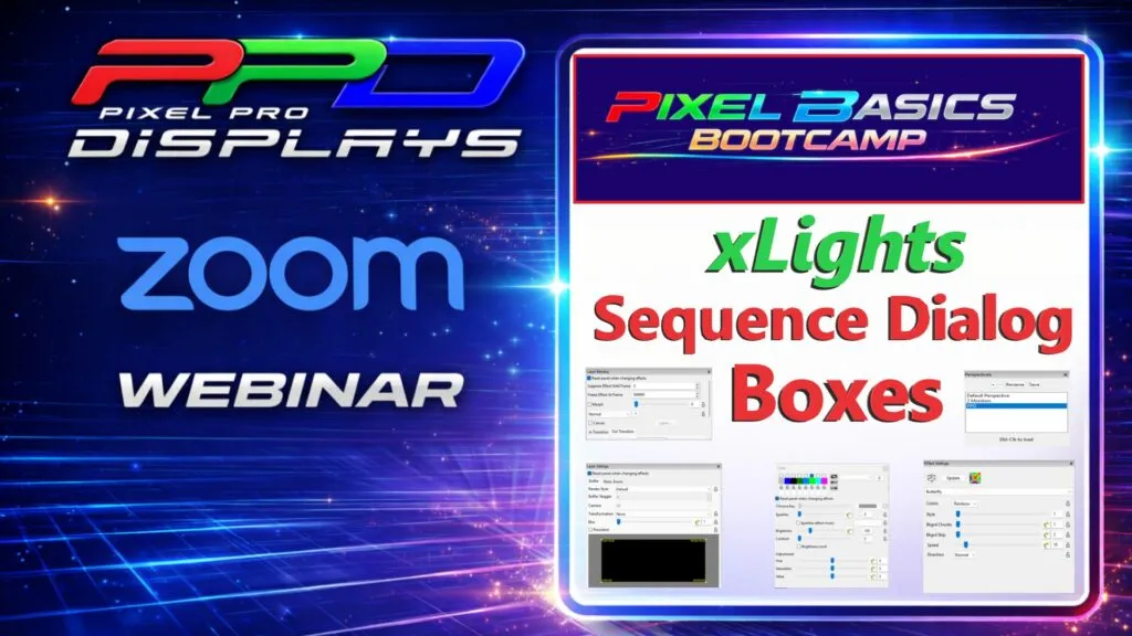 This webinar takes a closer look at the Sequence Dialog Boxes in xLights. These are the many settings panels you interact with while building and editing effects in the sequence tab of xLights. These dialog boxes control everything from effect adjustments to layering behavior, and understanding what they do can make updating and editing effects much smoother.